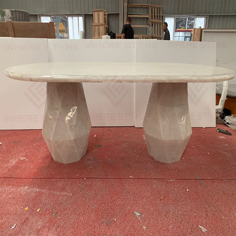 Nom du produit:Table de salle à manger en quartzite onyx cristal blanc translucide de luxe