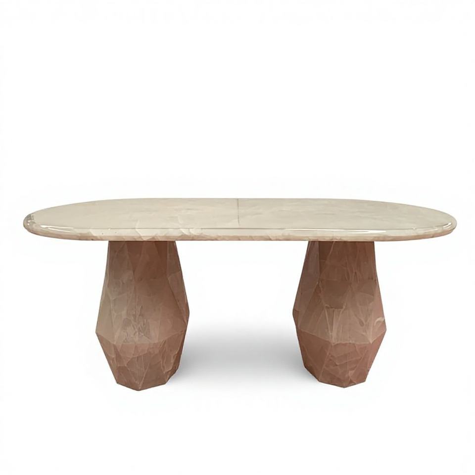 Table de salle à manger en quartzite onyx cristal blanc translucide de luxe