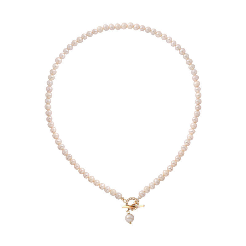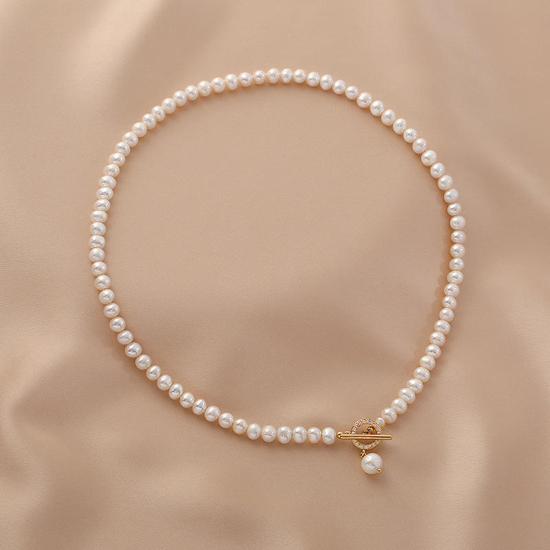 Collier minimaliste avec boucle OT, chaîne claviculaire, design personnalisé, collier pour femme, pendentif en perle d'eau douce, personnalisable