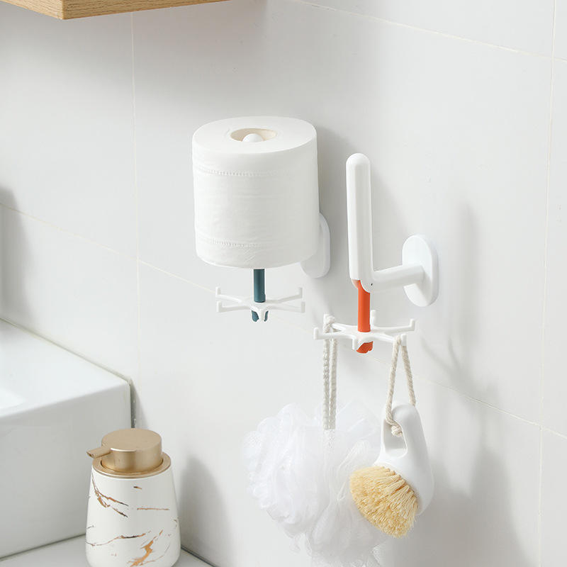 Porte-papier minimaliste avec crochet rotatif, aucun perçage requis, accessoire de salle de bain multifonctionnel en plastique orange et bleu
