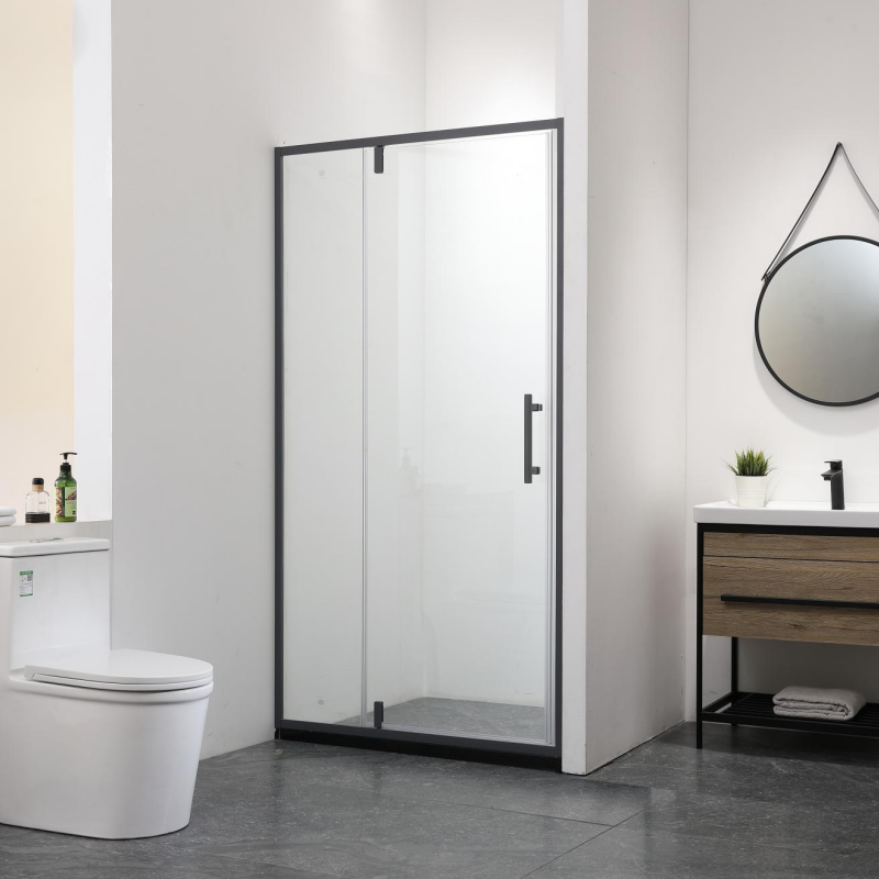 Paroi de douche pivotante minimaliste en verre avec cadre, épaisseur 6 mm, design droit pour salle de bain
