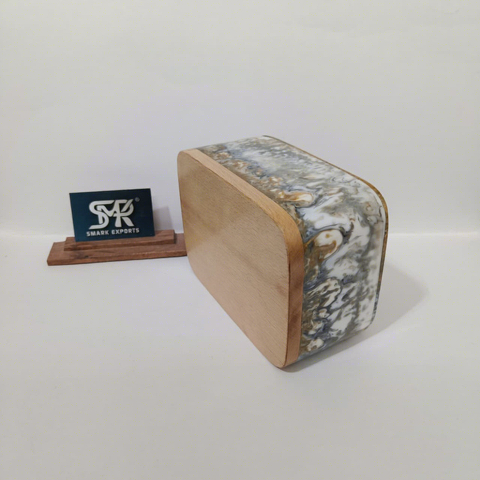 Boîte à mouchoirs décorative en résine minimaliste, texture marbre, base en bois, pour la maison moderne et le bureau, organisateur de décoration