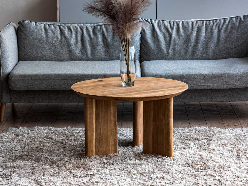 Table basse ronde minimaliste avec finition en chêne naturel lisse Élégance discrète pour les maisons contemporaines