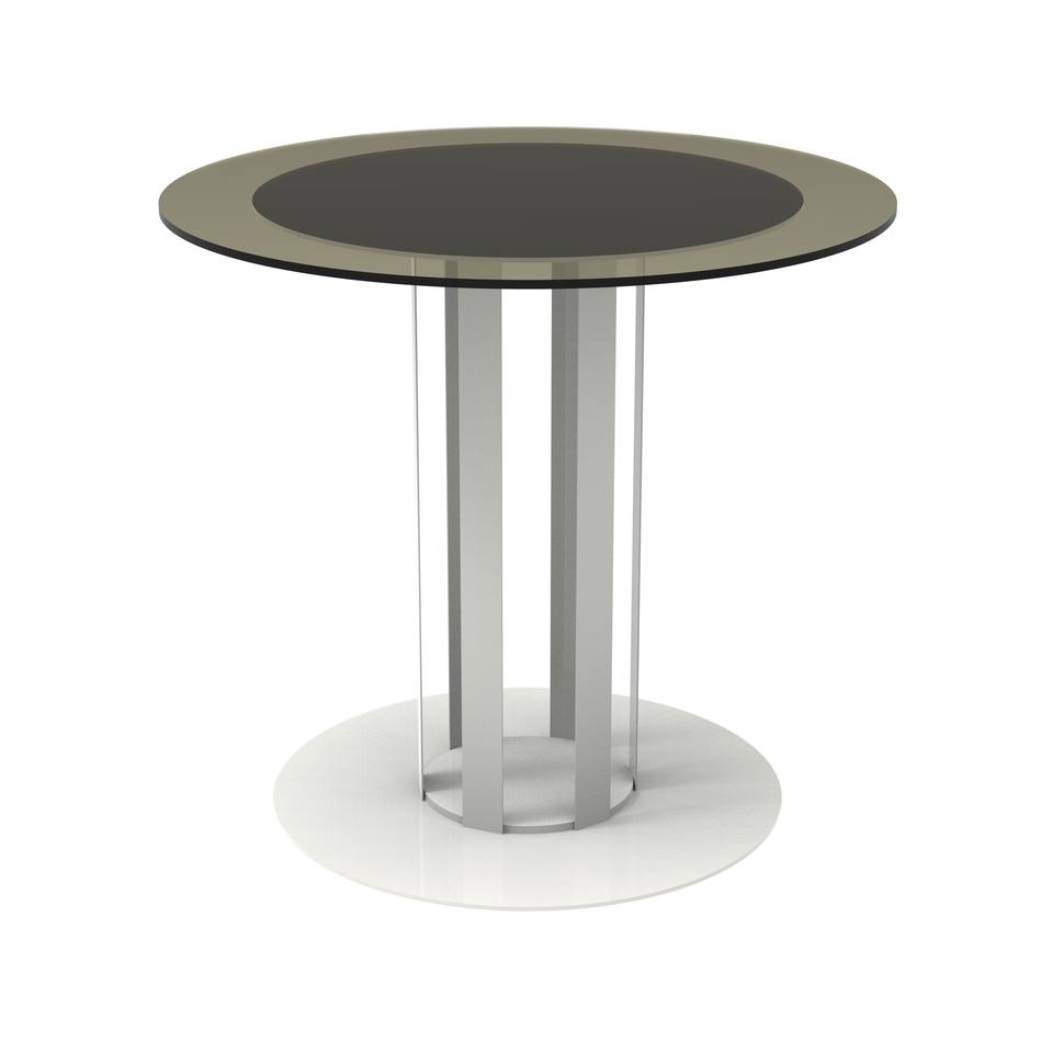 Table d'appoint ronde minimaliste avec plateau en verre trempé et support cylindrique en métal