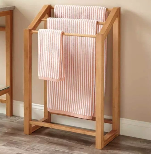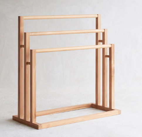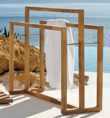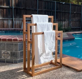 Porte-serviettes minimaliste à lattes pour bord de piscine (bois massif)