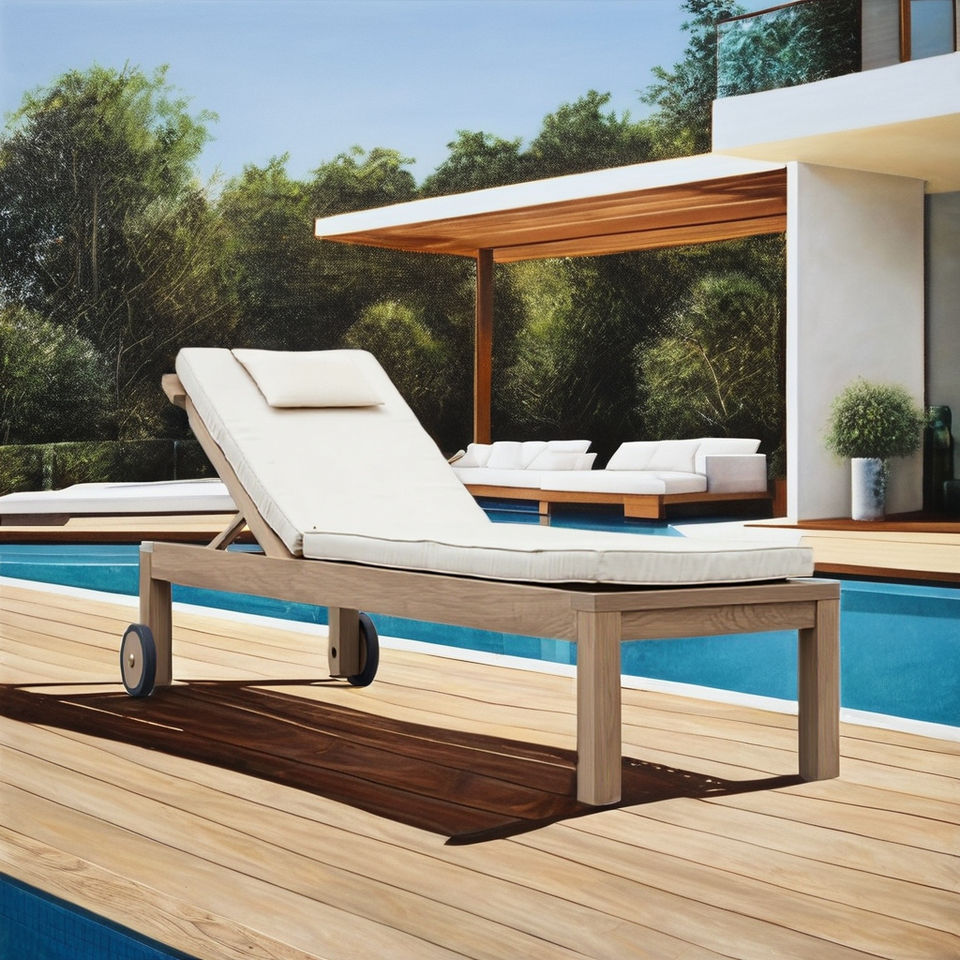 Chaise longue minimaliste en teck massif, durable, inclinable, résistante aux UV, écologique, moderne, pour extérieur, villa, parc, bord de piscine