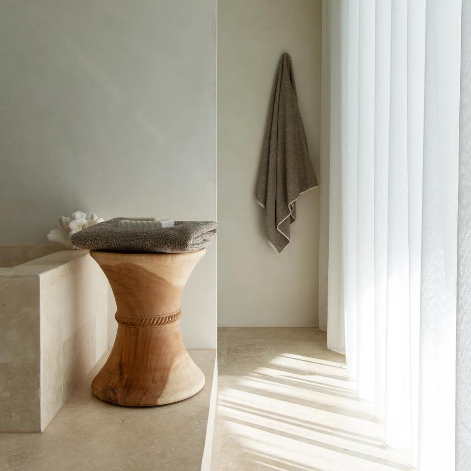 Tabouret Minimaliste en Bois de Teck avec Corps Creux Unique, Grain Naturel, Design Moderne pour Projets d'Intérieur Maison, Hôtel et Ferme