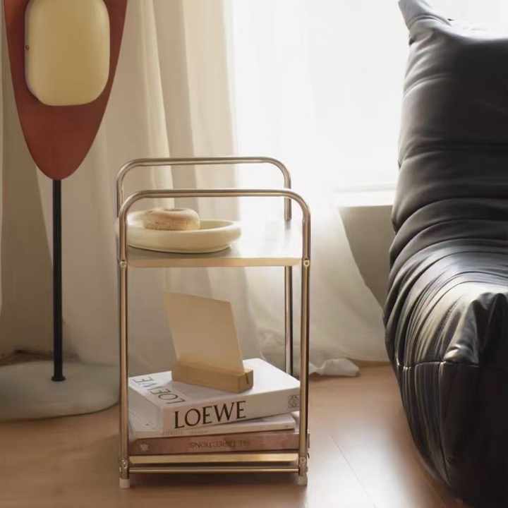 Caractéristique de conception ::Étagère à 2 niveaux mobile avec roulettes, compacte