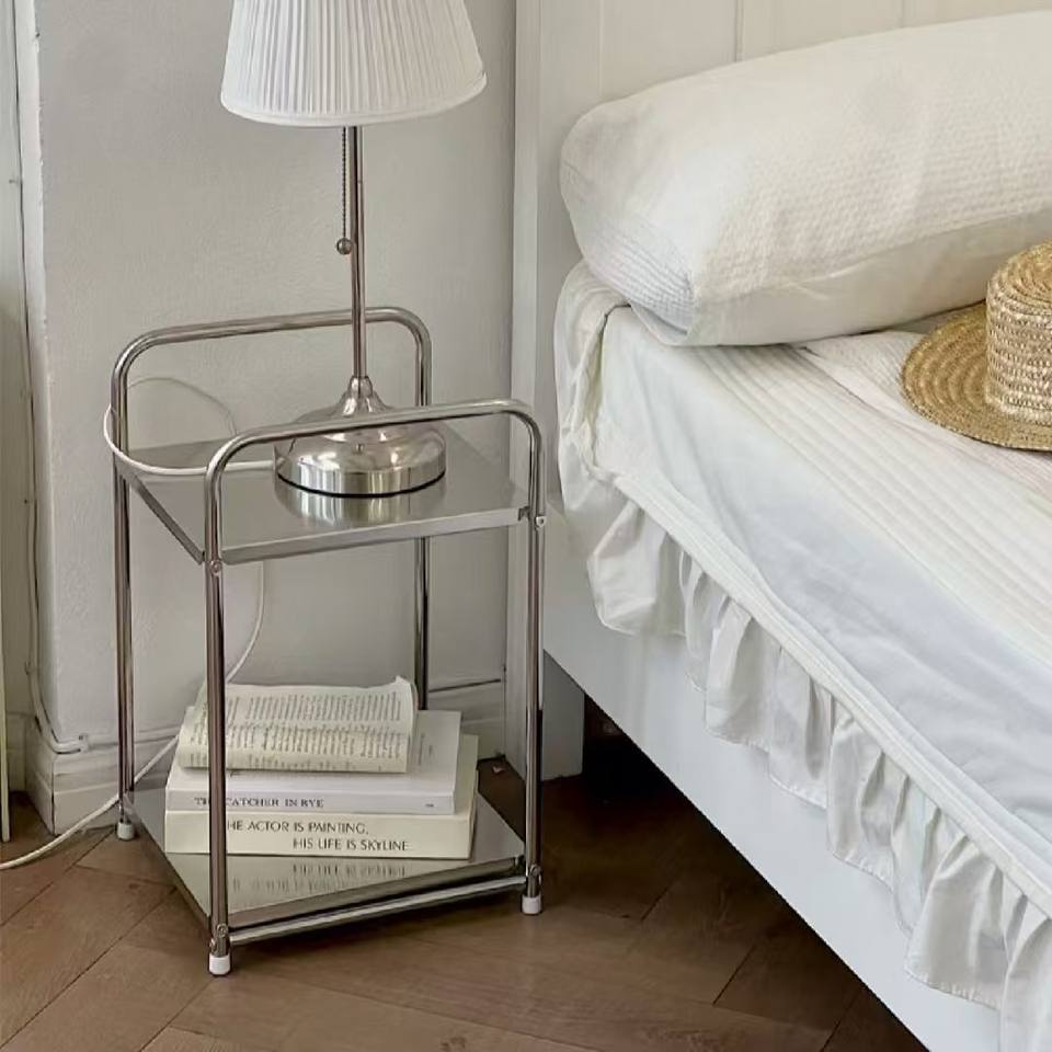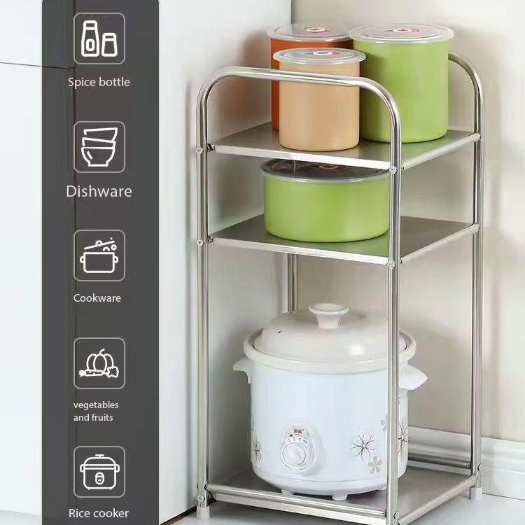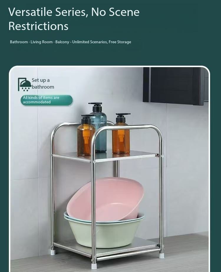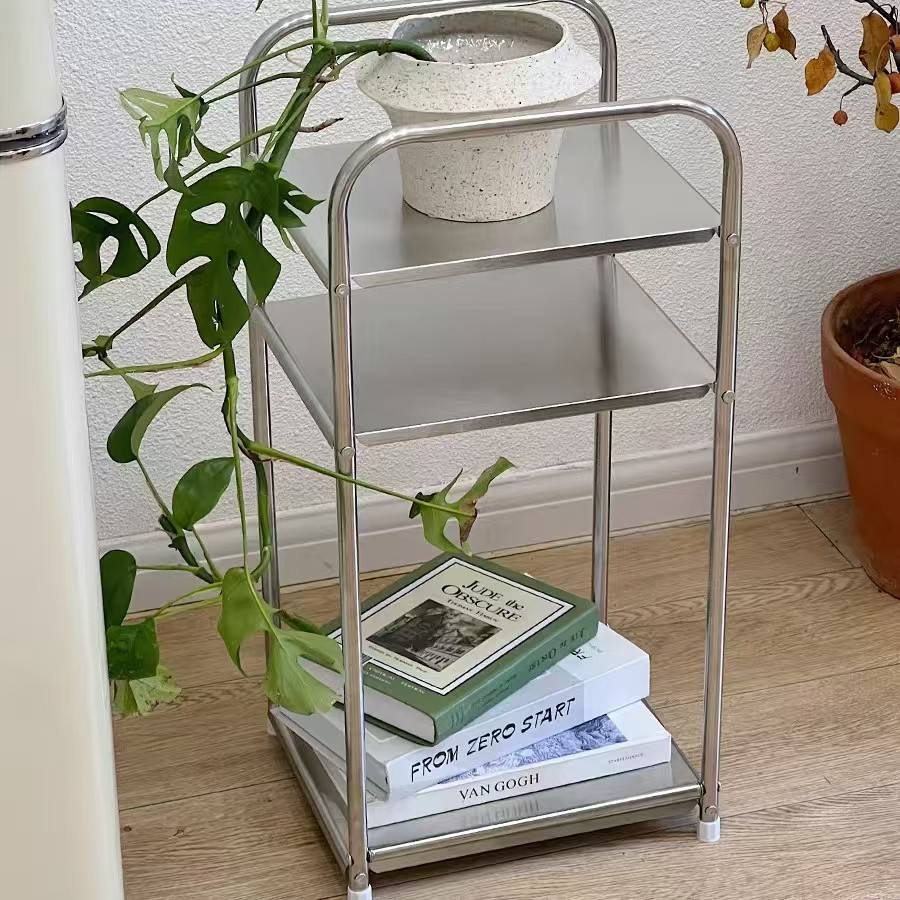 Étagère de rangement minimaliste en acier inoxydable à 2 niveaux, unité de rangement mobile pour cuisine et salle de bain, table d'appoint