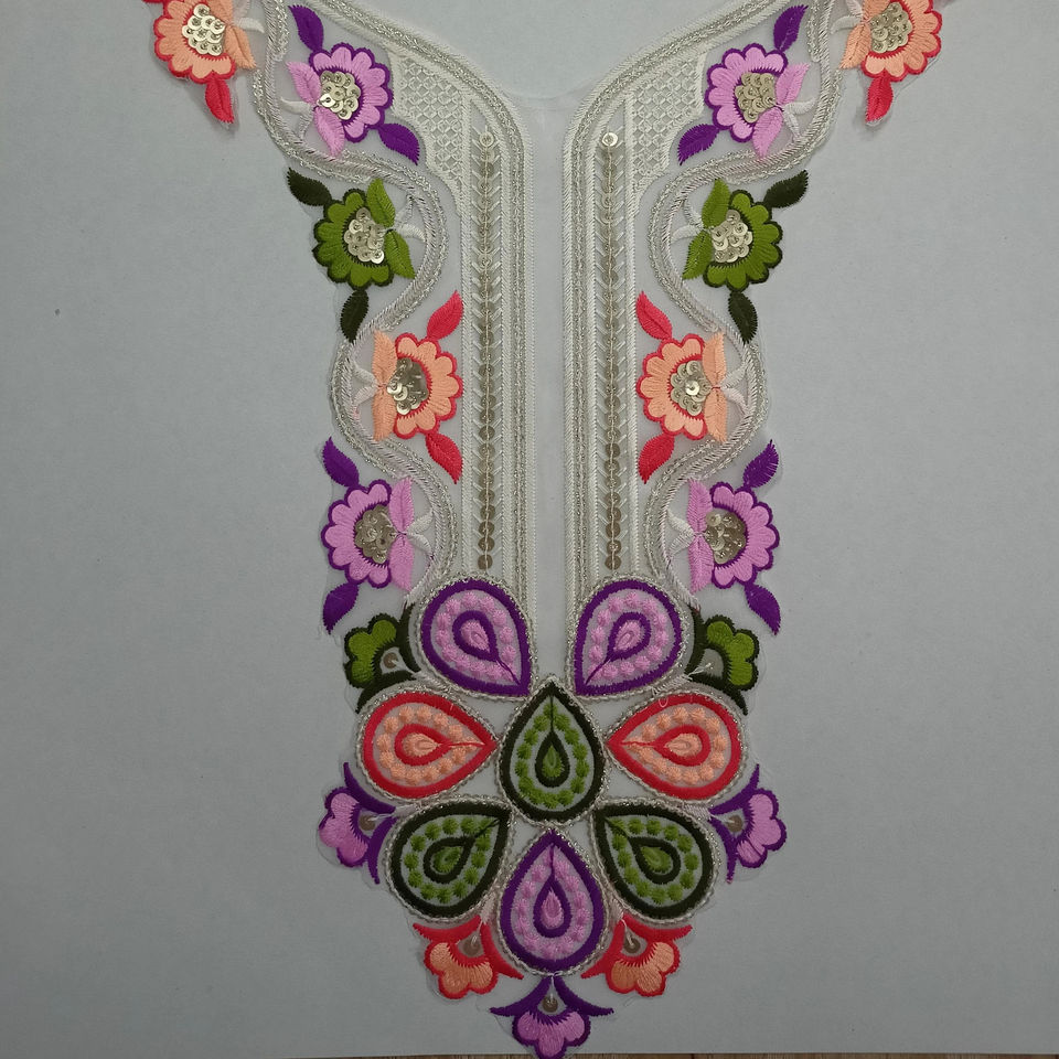 Col en filet brodé de style minimaliste avec travail à paillettes fines patchs élégants simples pour Kurti Blouse robe décolleté