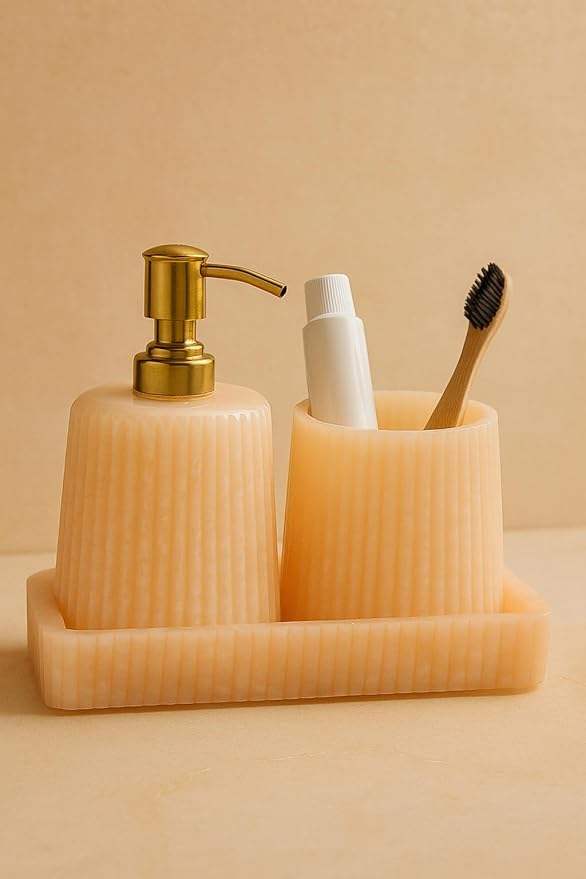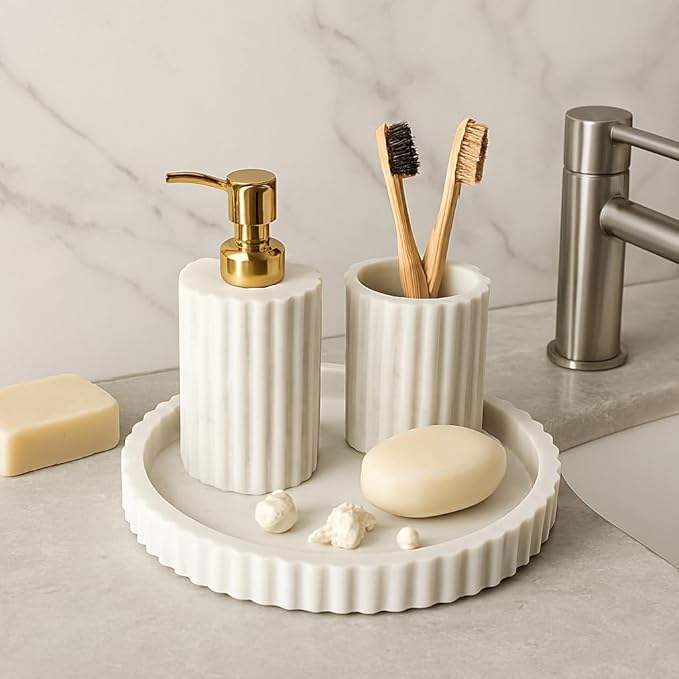 Ensemble de salle de bain en résine époxy style minimaliste, 4 pièces, pour la maison : distributeur de savon, porte-brosse à dents, plateau de toilette, à prix abordable