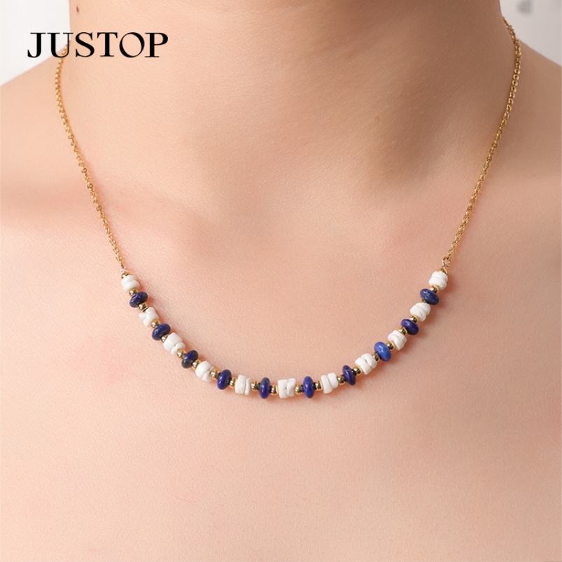 Collier ras du cou style minimaliste en acier inoxydable plaqué or oeil de tigre pierre de jade blanc chaîne à maillons perlés design unisexe tendance
