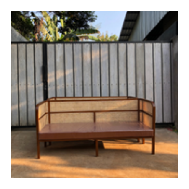 Canapé d'extérieur deux places en rotin et bois massif, style minimaliste, pour hôtel, villa, parc, terrasse et mobilier d'extérieur
