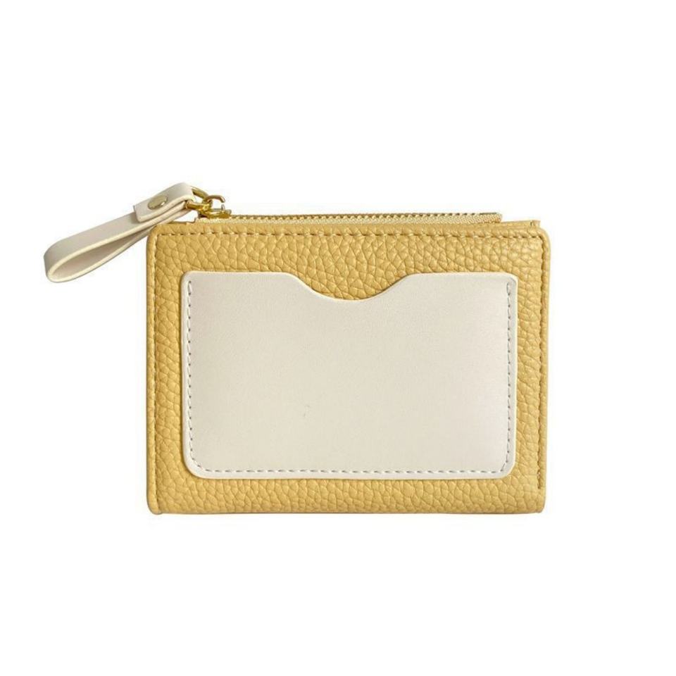 Portefeuille court minimaliste unique en PU, motif litchi imprimé, couleurs contrastées, avec bouton antivol, porte-monnaie et cartes, ouverture facile