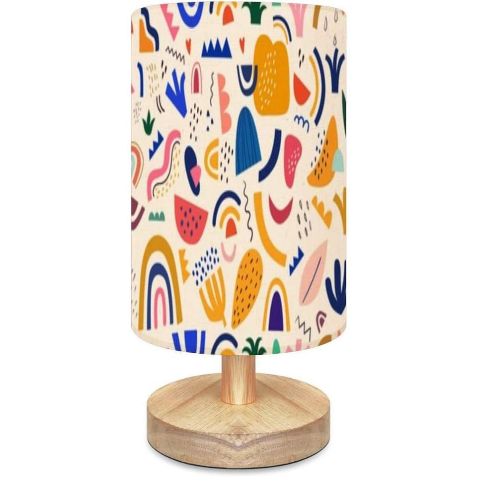 Lampe de bureau de chevet à base de bois minimaliste Impression personnalisée Doodles colorés à la demande pour chambre à coucher salon-Batterie AC disponible