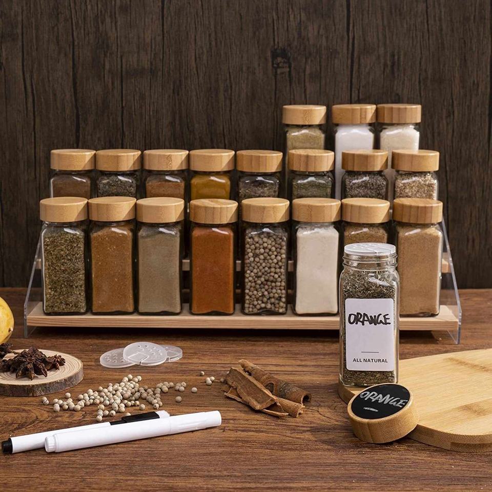 Bocaux à épices en verre de 4oz de conception minimale avec couvercle en bambou contenants vides pour organisateur d'assaisonnement