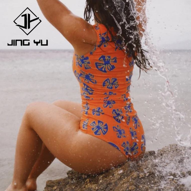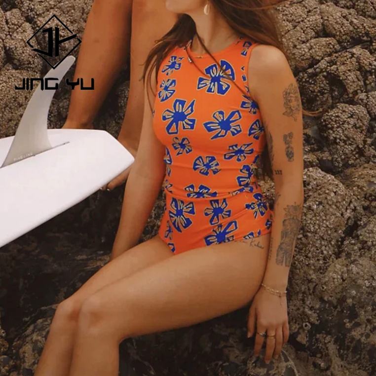 Maillot de bain sans manches à col rond imprimé en polyester recyclé personnalisé, quantité minimale de commande