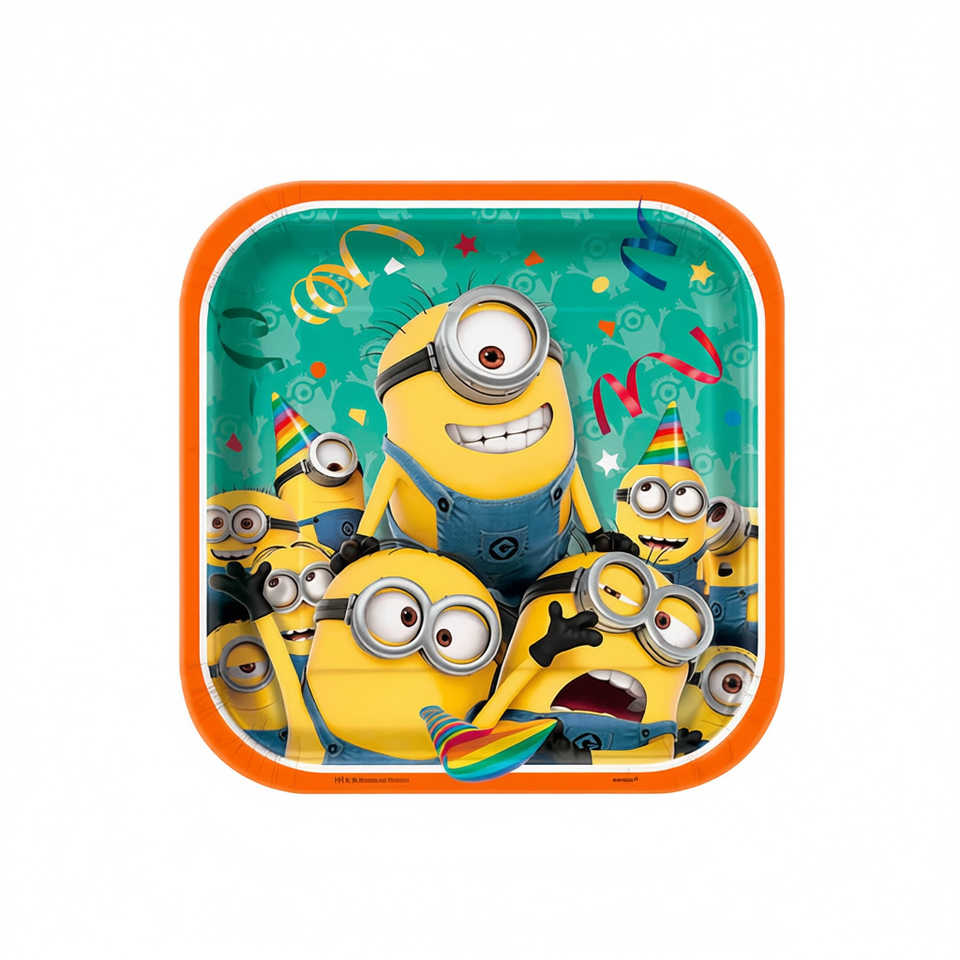 Assiettes jetables Minions 23 cm, 8 pièces, design carré, thème fête