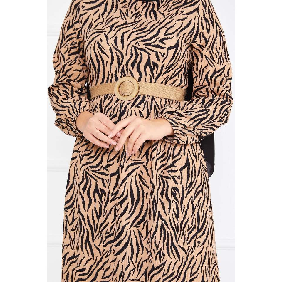 Robe modeste en vison avec hijab en crêpe élégant motif de verre cassé avec ceinture