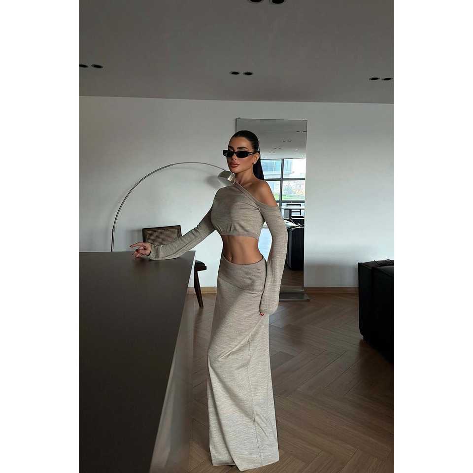 Ensemble jupe et haut en tricot style club chic, coupe ajustée, 2 pièces, taille XL, longueur au-dessus du genou, pour l'hiver/l'automne
