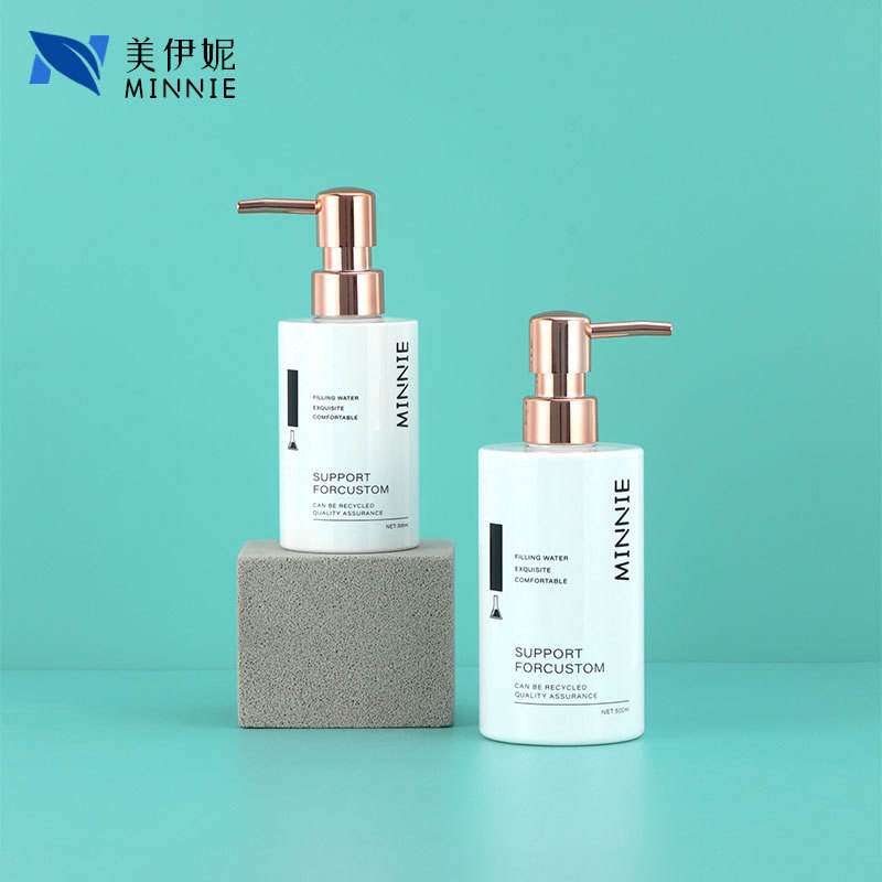 Flacon 300 ml blanc mat avec pompe PET or rose UV