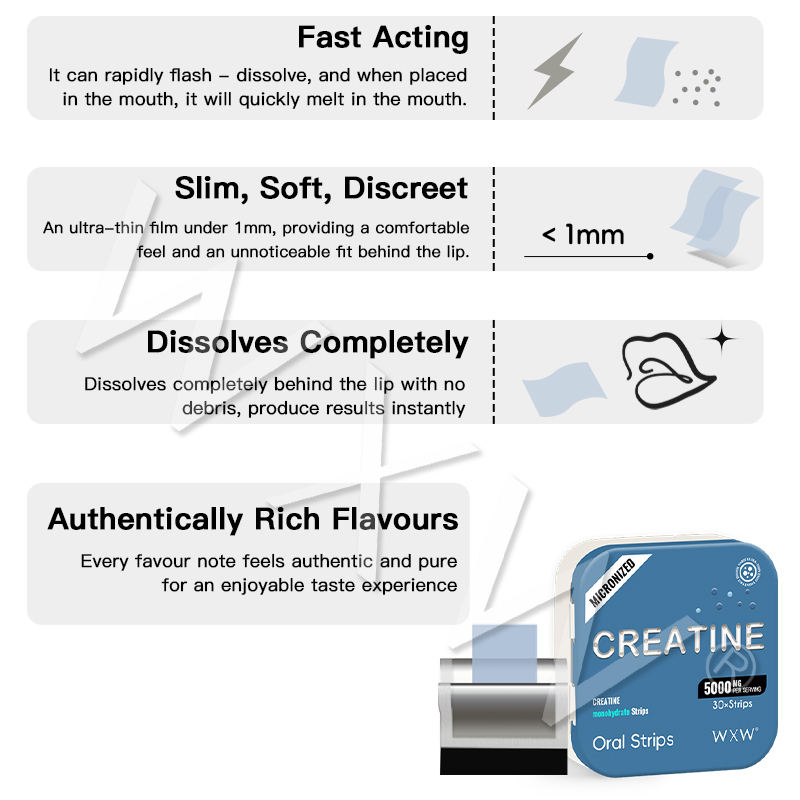 Mint Blast Creatine Oral Thin Film Energy & Strength Boost Supplement Muscle Growth Support Creatine Oral Strips for Adults