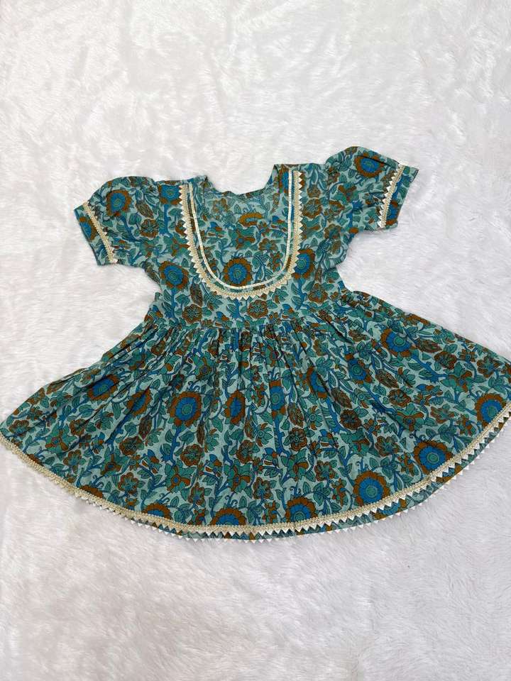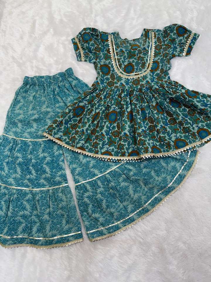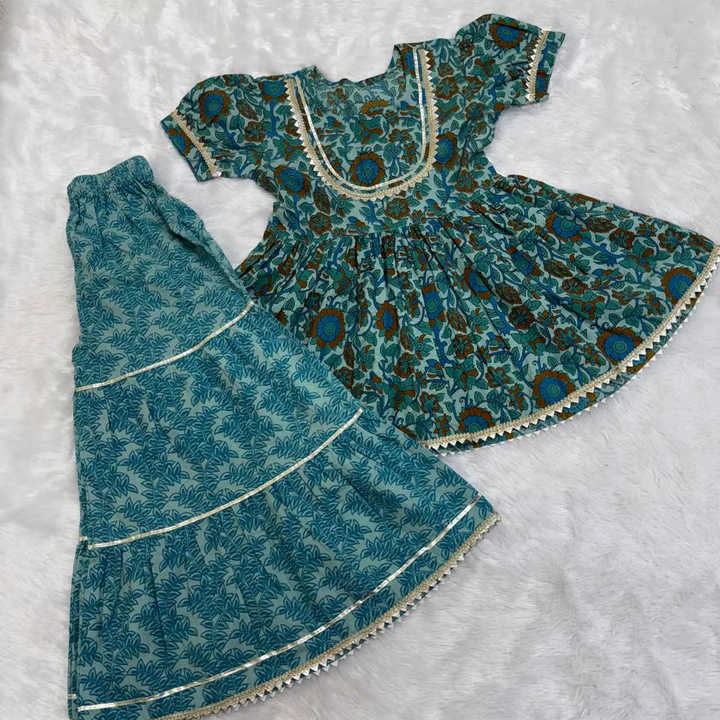 Kurti en coton tendance à imprimé floral menthe avec Sharara et Dupatta pour fête d'enfants