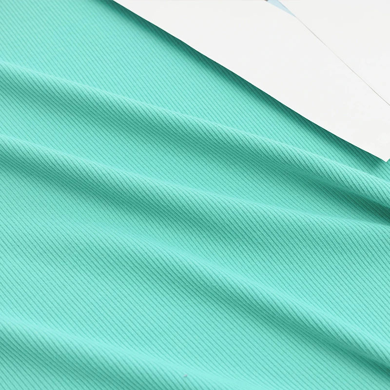 Tissu en coton extensible à côtes en jersey vert menthe pour la couture de vêtements pour enfants et vêtements décontractés en tissu fin