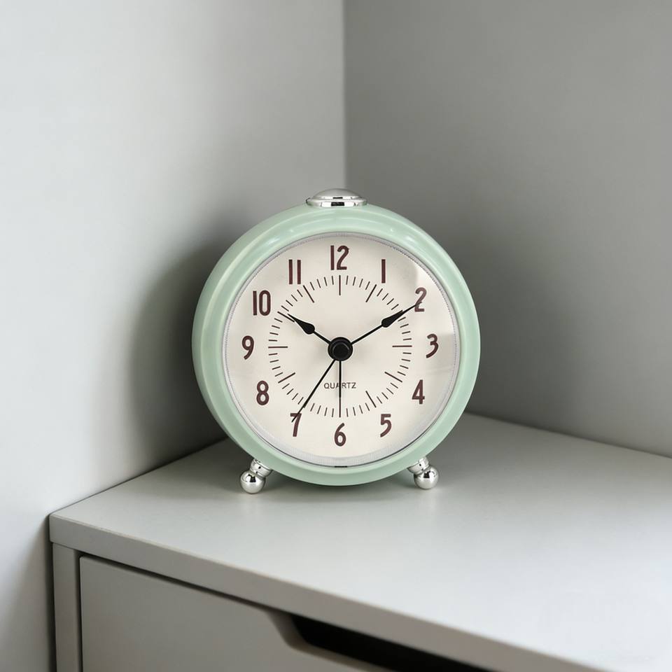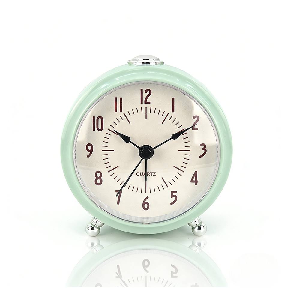 Réveil de chevet couleur vert menthe pastel sans tic-tac avec rétroéclairage pour chambre de fille