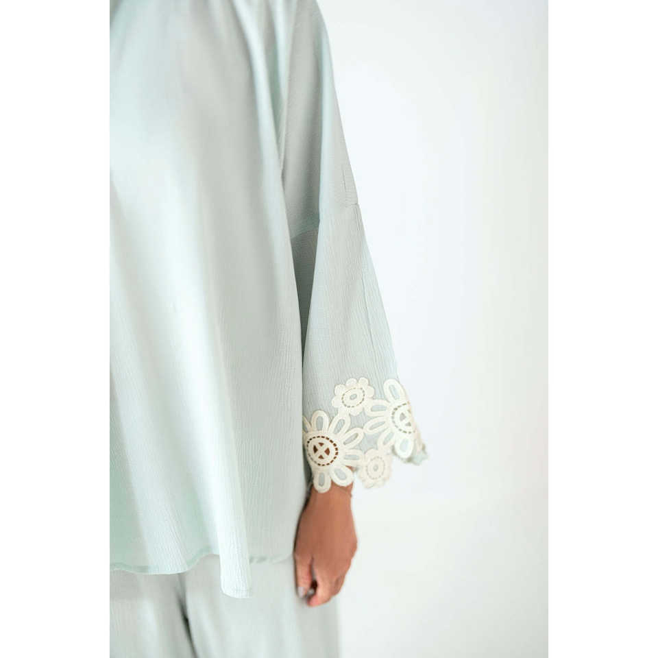 Ensemble coordonné en crêpe froissé vert menthe pour femme – Tendance décontractée deux pièces – Tailles XS/S/XS/S – Idéal printemps/été