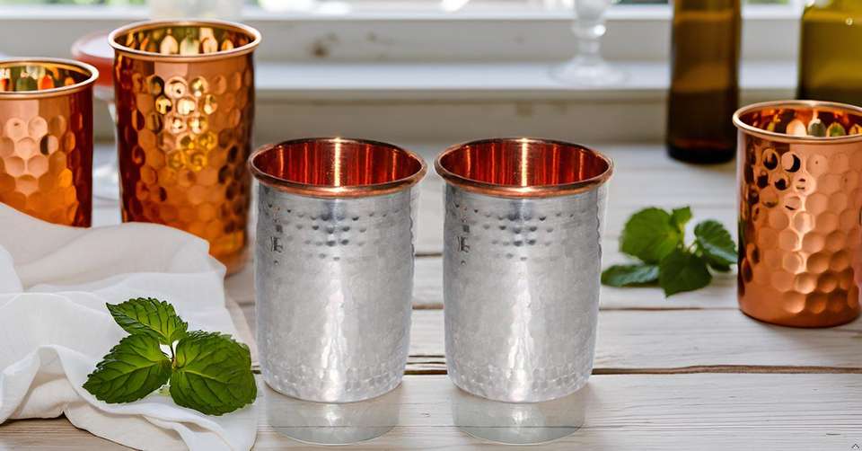 Lot de 2 gobelets martelés en métal cuivre et acier Mint Julep Cup Accessory