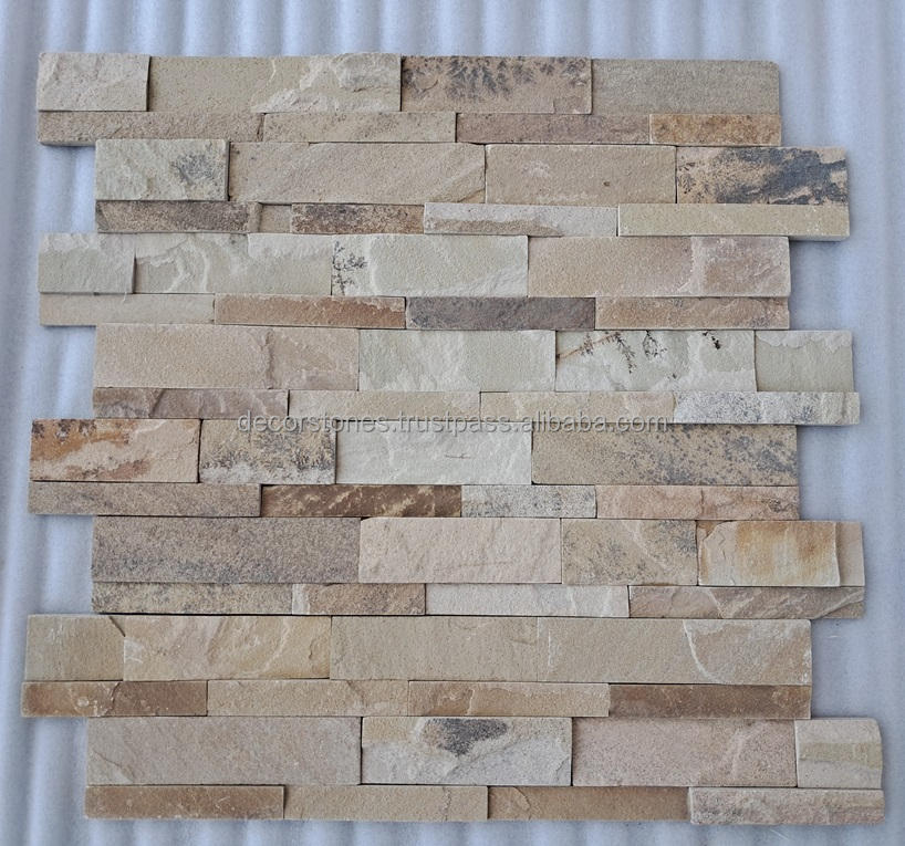 Panneau de pierre de culture en grès menthe, dalles de pierre empilées durables en ardoise, revêtement mural pour cheminée, décoratif rustique pour jardin