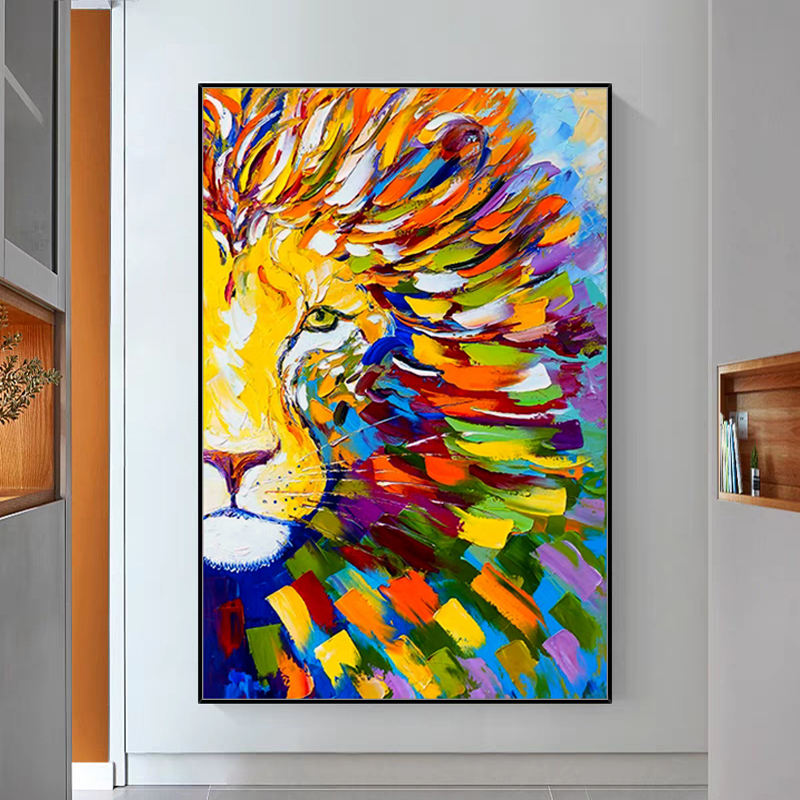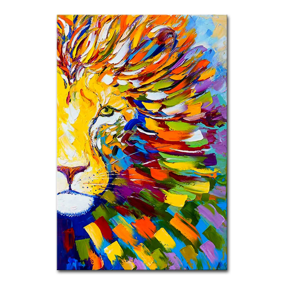 Mintura – Grande toile acrylique personnalisée, motif lion, peinte à la main, imperméable, affiche murale, bords entièrement peints, style dessin animé, pour chambre et maison