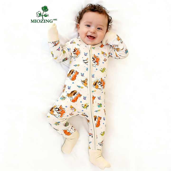 Combinaisons pour bébé unisexes en fibre de bambou avec logo personnalisé Miozing, fermeture éclair bidirectionnelle, écologiques et douces, adaptées aux bébés souffrant d'eczéma, utilisables toute l'année