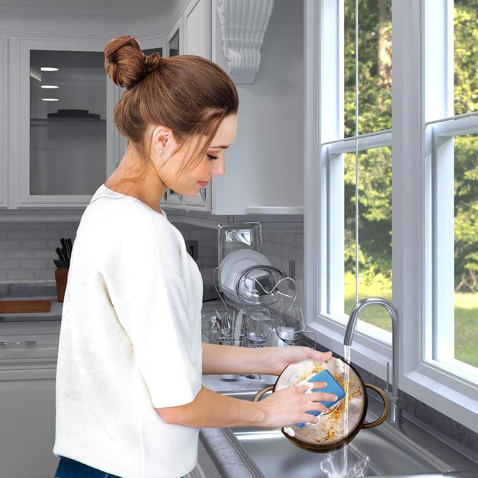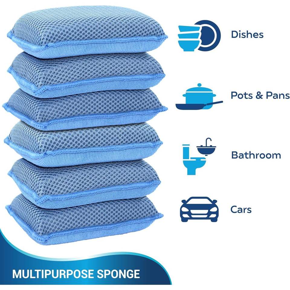 Éponges de nettoyage Miracle Microfiber Kitchen Scrub-It (lot de 6) – Éponges de lavage de vaisselle ultra-résistantes, non-abrasives, pour machine à laver, tampons à récurer