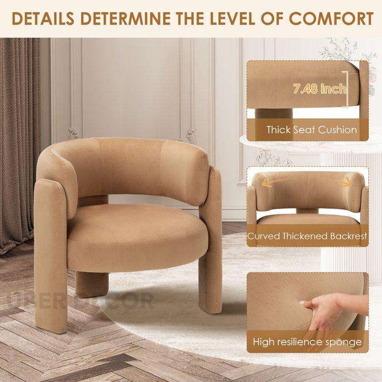Mirael Modern Accent Chair with 3-Legs Wide Upholstered Design for Bedroom or Living Room