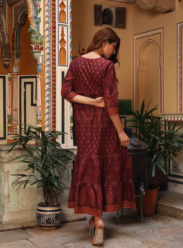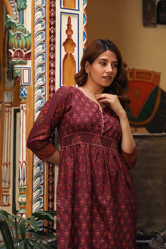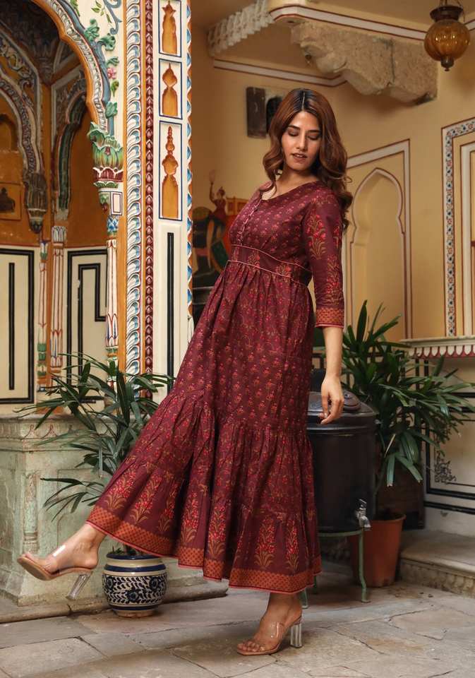 Robe Mirana en pur coton, imprimée à la main, style bohème, vêtement d'été éthique fait à la main