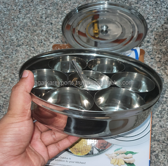 Contenu du paquet:1 Boîte Masala + 7 Récipients + 1 Cuillère et 1 Plaque en Acier.