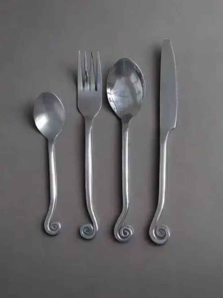 Ensemble de couverts en métal poli miroir, faits à la main, avec poignée design, ensemble de couverts en acier inoxydable, unique, passe au lave-vaisselle et durable