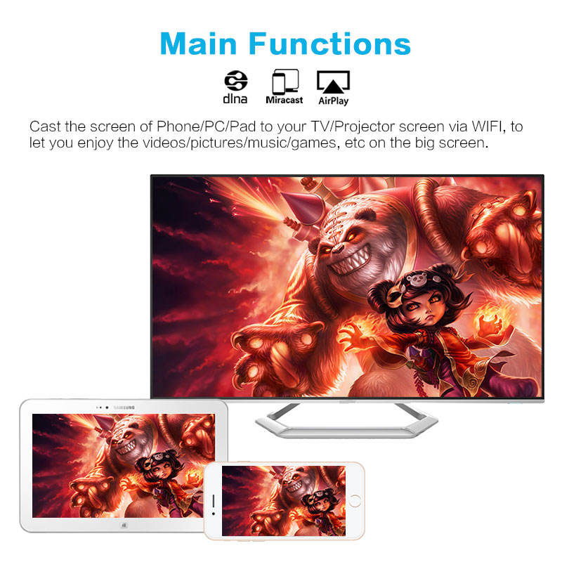 Écran miroir Wifi Display Dongle Miracast avec Rockchip 3036 Dual Core Miracast/DLNA/Airplay pour IOS/Android/Windows/Mac