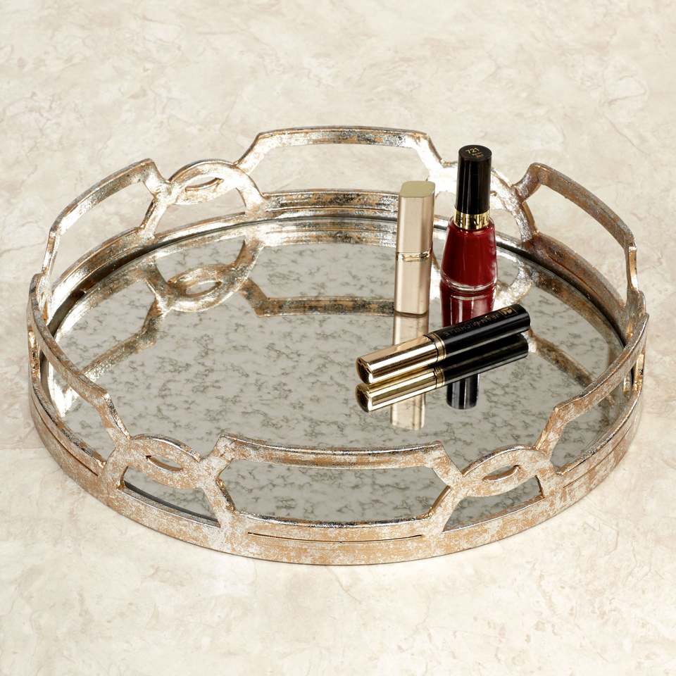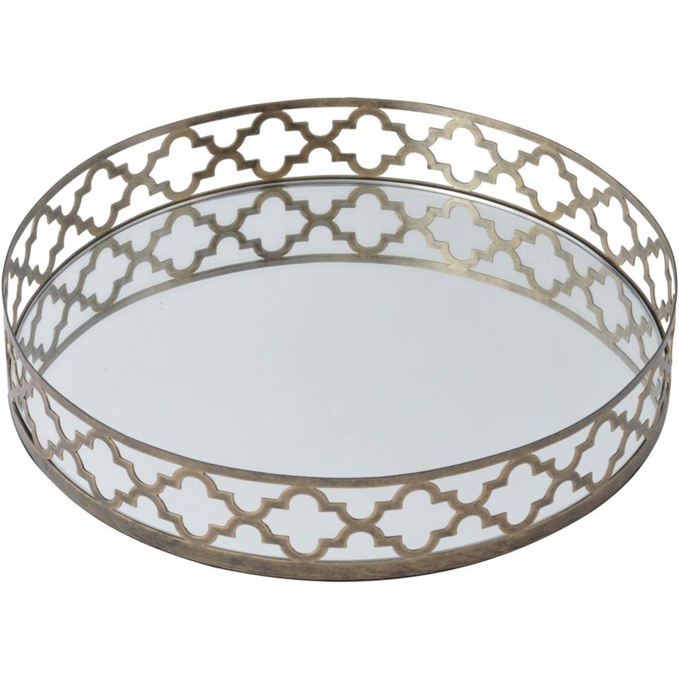 Plateau miroir Décoration de table Pièce maîtresse Décoration Miroir décoratif de luxe en métal doré Forme ronde Ensemble de plateaux de service