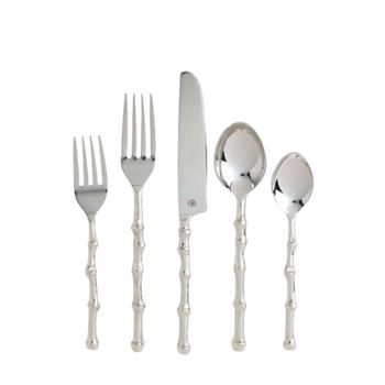 Ensemble de couverts en acier inoxydable miroir de couleur argentée au design élégant, parfait pour la vaisselle, fabriqué en Inde