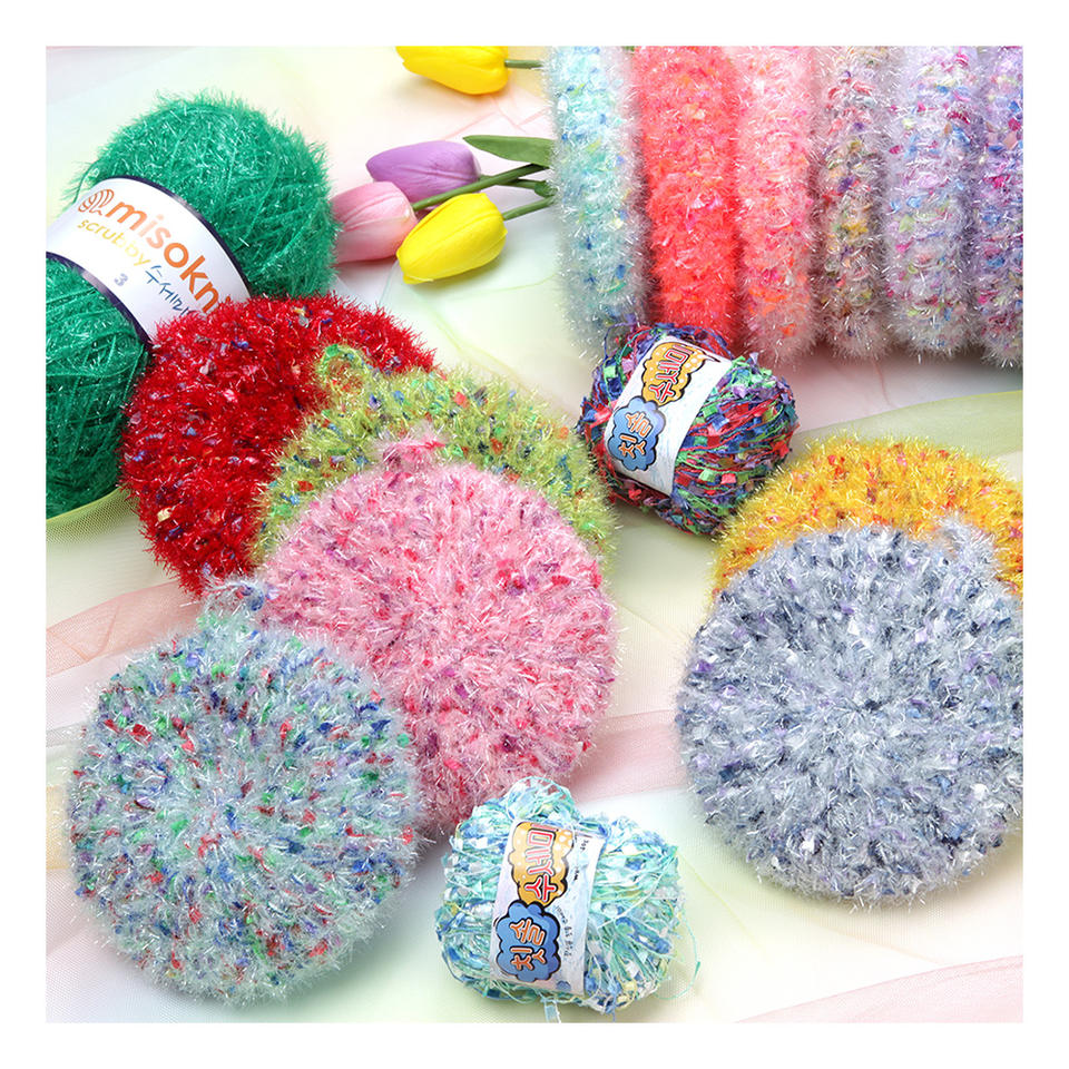 [Misoknit] Toothbrush Yarn DIY Knitting Scrubby yarn eco friendly craft 100% Polyester / 40g / 60m / Thickness 1mm / 10colors