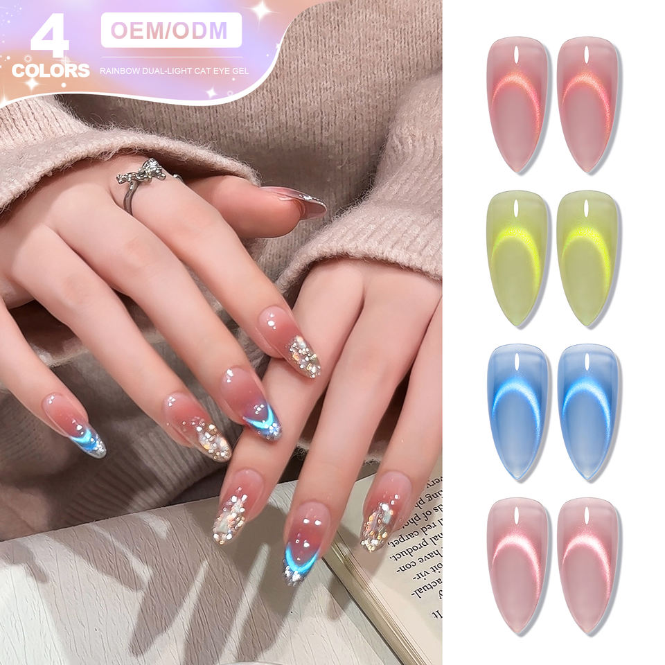 Miss Gooey Vernis Gel Effet Œil de Chat Double Lumière Arc-en-ciel 4 Couleurs Sans HEMA Professionnel Fabricant de Vernis Gel UV Vente en Gros