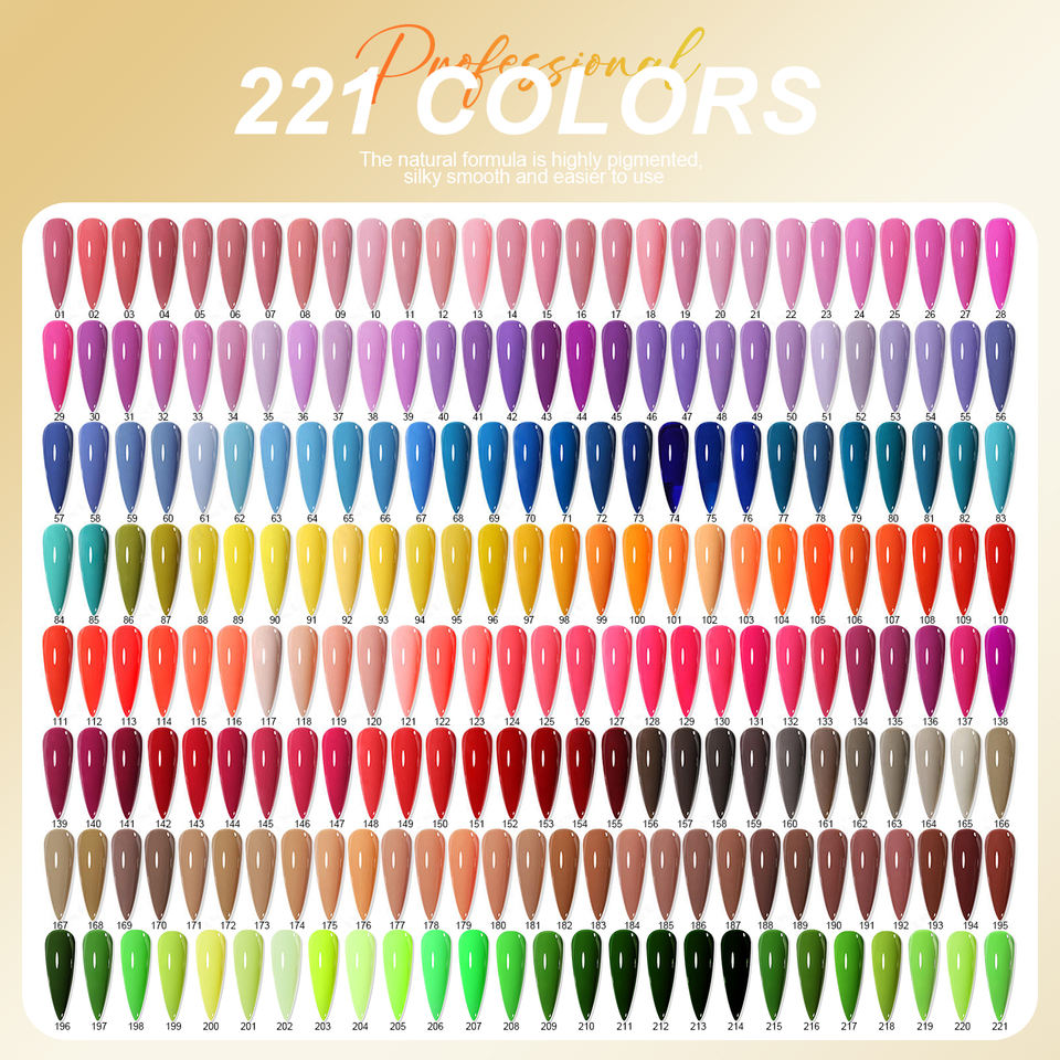 Eco-Friendly, Vegan, Non-Toxic, Long lasting, hema free, High Pigmentation, Soak Off, Semi Permanent, Fast Curing, High Gloss, Rich Pigment, Acid Free, Self-Leveling, Long Lasting ShineFeature
