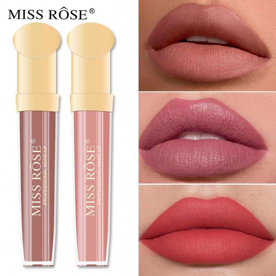 Miss Rose Gloss à lèvres mat velours de haute qualité 5g, anti-transfert, waterproof, longue tenue, nacré