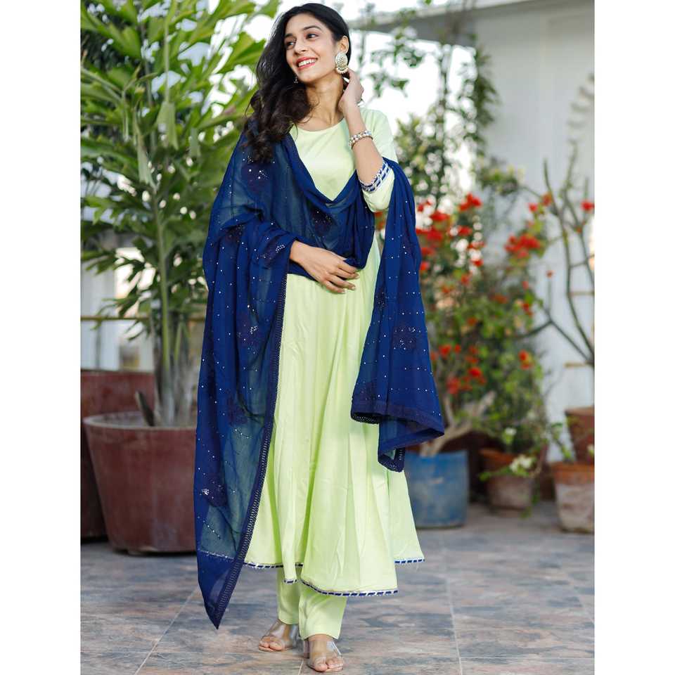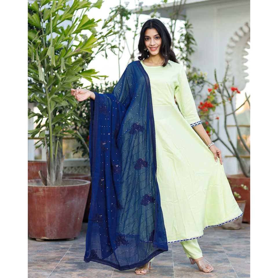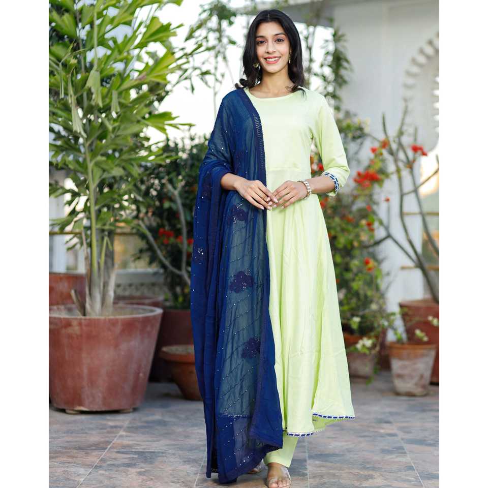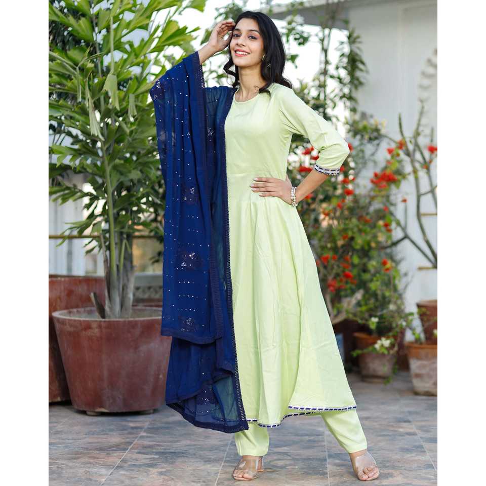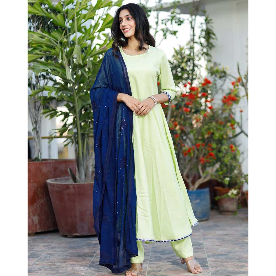 Ensemble de costume élégant en mousseline de soie vert brume - Taille XS avec haut à manches trois-quarts