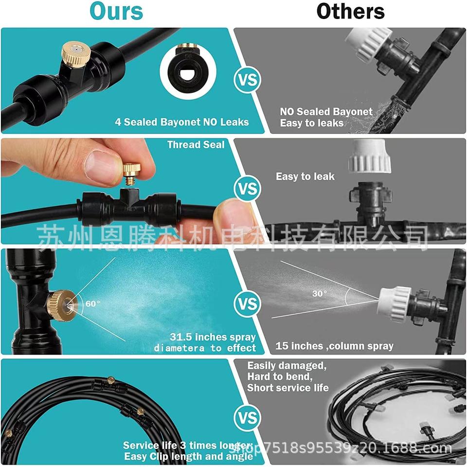 Système de brumisation avec câble de 25 m, 30 buses, commande manuelle, refroidissement de jardin, utilisation extérieure