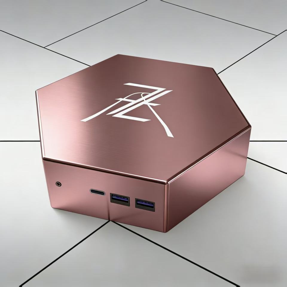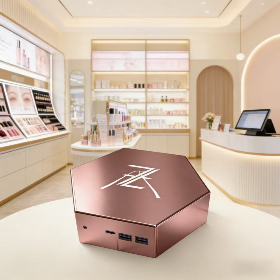Mini PC Host Rose Brumeux Nouveau Affichage 4K pour Présentation de Produits en Magasin de Cosmétiques et Gestion de Recharges Clients – Apparence Élégante