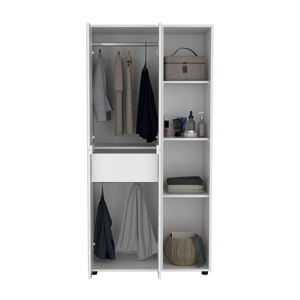 Armoire à double porte blanche Misuri avec tringle de suspension et étagères ouvertes avec tiroir à double porte